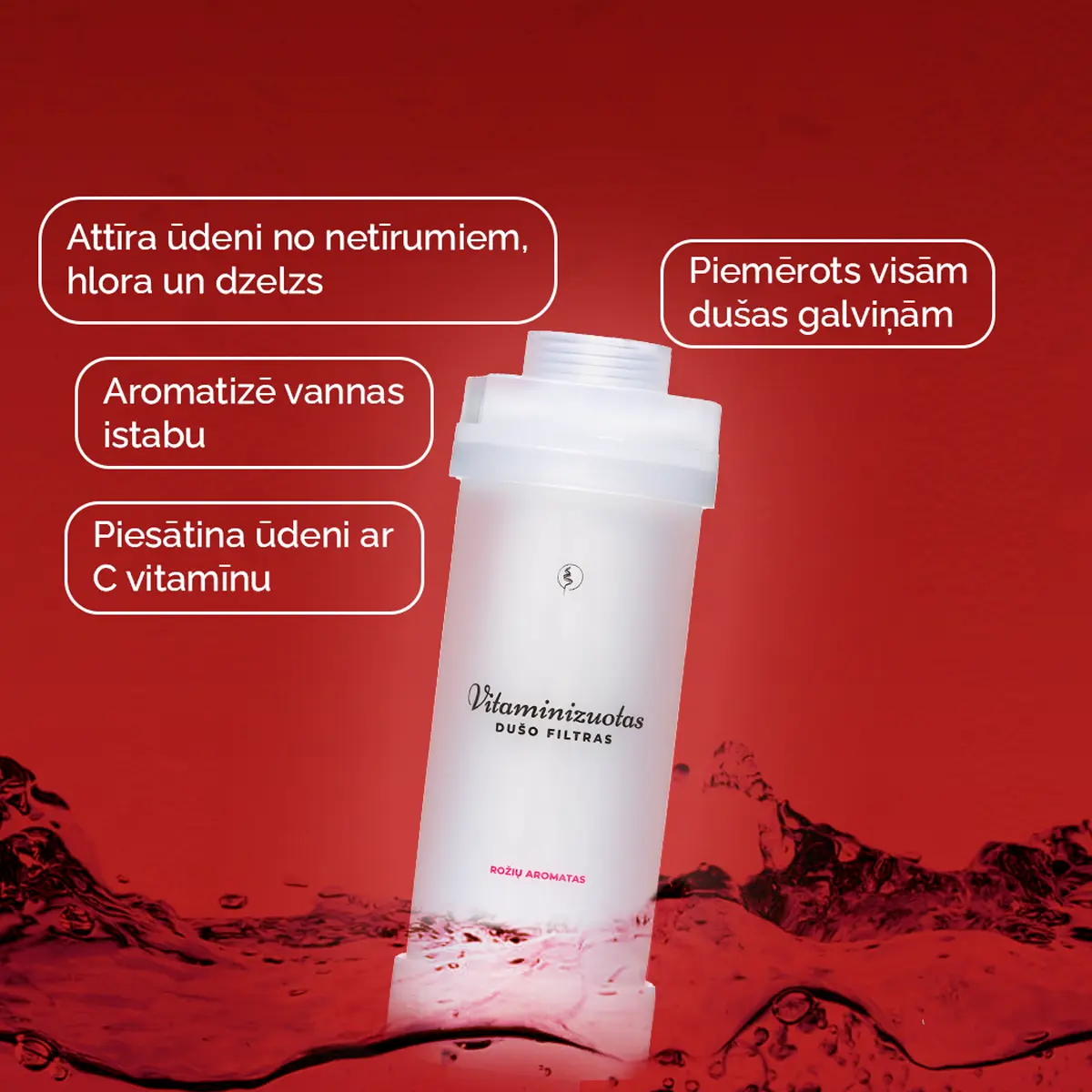 Vitaminizēts dušas filtrs – Rožu aromāta