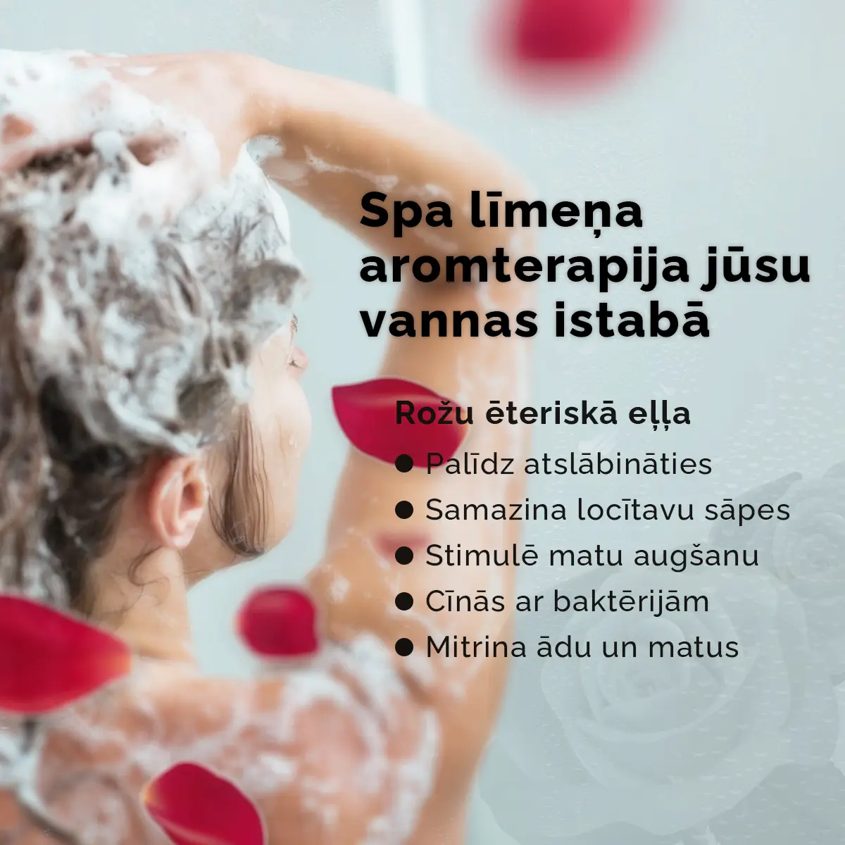 - Aromatizēs vannas istabu un ļaus izbaudīt lavandas ēteriskās eļļas aromātu un tā sniegtajām priekšrocībām